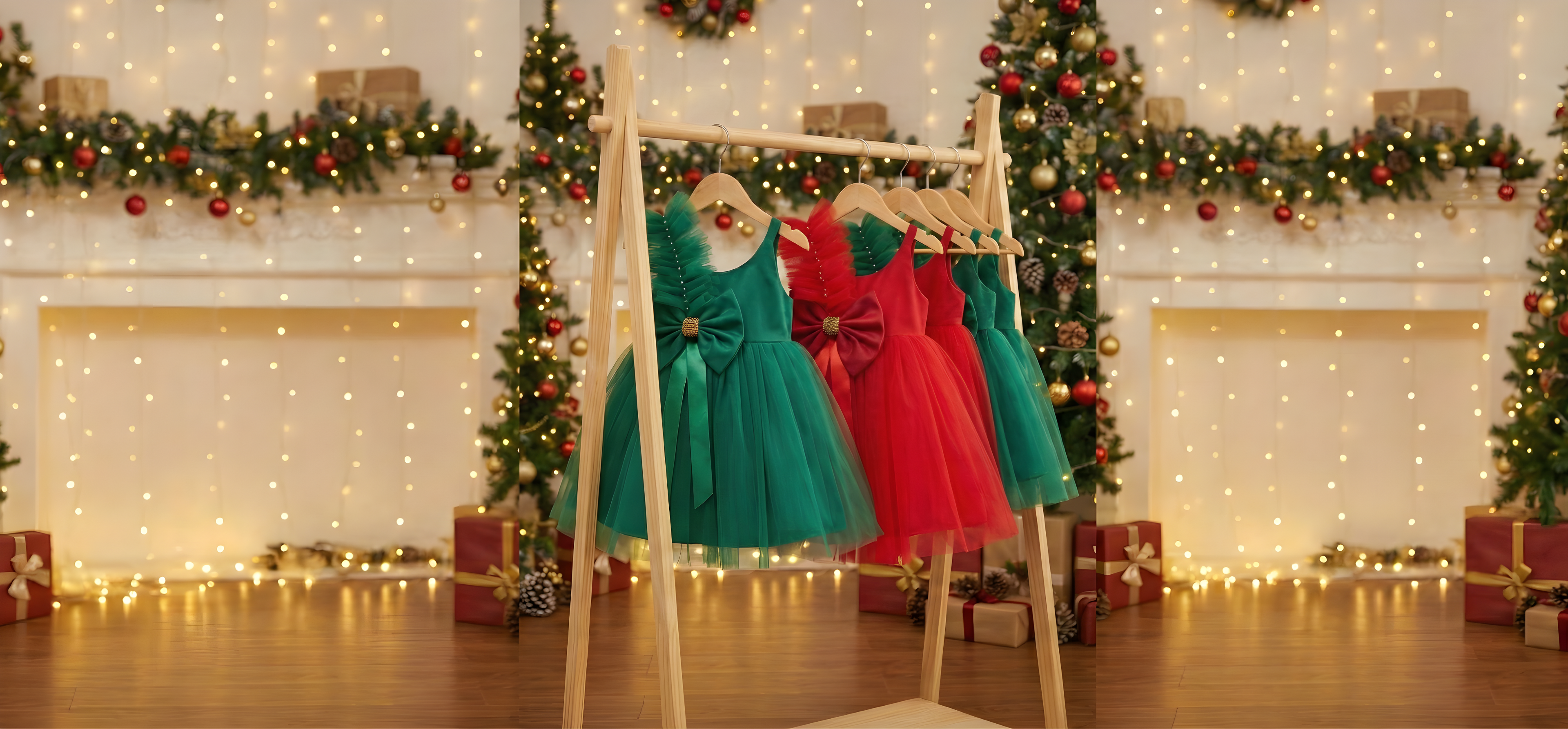 Alexandria Holiday Kids Bow Dress with Green & Red Tulle